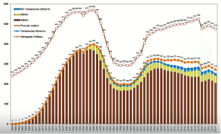 В Ханты-Мансийском автономном округе снижение добычи нефти «идёт планомерно,– продолжил Брехунцов,показывая на диаграмме сравнительные данные (278 млн т в 2007 году и 205 млн т в 2024 году). – И когда сегодня некоторые чиновники говорят,что добыча падает из-за того,что нам ОПЕК что-то не разрешает,они лукавят».