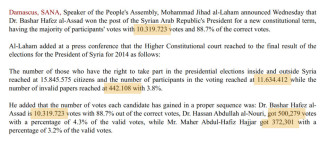 Голосов за Башара Асада – 10 319 723.