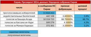 Нам не нужно ни сложных графиков Шпилькина,ни данных по каждому избирательному участку,как для других методов выявления фальсификаций. Мы просто можем взять в руки калькулятор и убедиться,что Башар Асад – узурпатор.