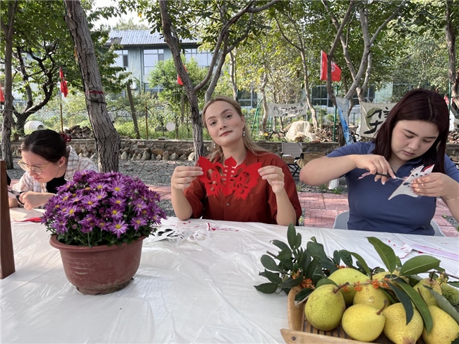 На площадке мероприятия царила сильная праздничная атмосфера, а различные традиционные народные мероприятия были яркими. Особенно заметно было сеанс вырезки бумаги, когда в руках студентов летали листы красной бумаги, а ножницы были немного ржавыми, но под тщательным руководством местных художников по вырезке бумаги все постепенно овладели основными навыками. Через некоторое время на бумаге вскочили реалистичные бабочки, вызывая волны восхищения.