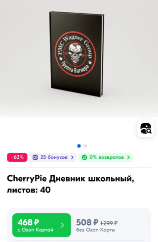 На популярных маркетплейсах Wlidberries и Ozon к 1 сентября появился школьный дневник с логотипом ЧВК «Вагнер».