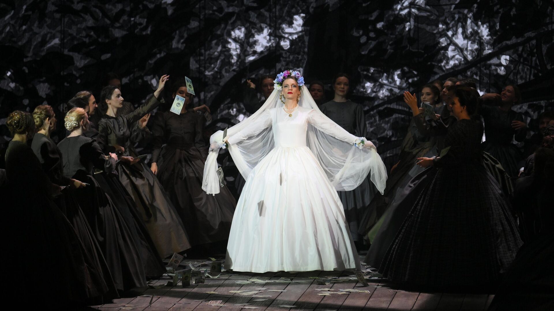 МОСКВА, 26 июн — РИА Новости. В Музыкальном театре имени К.С. Станиславского и Вл.И. Немировича-Данченко состоится главная оперная премьера 105-го сезона— "Русалка" композитора Александра Даргомыжского. Для постановки было создано уникальное сценическое пространство и пошито более 250 исторических костюмов."Есть чудесные, несправедливо полузабытые страницы русской музыки. "Русалка" Даргомыжского из таких, а потому очень хочется вернуть ее на сцену, дать вслушаться в эту свежую, естественную стихию русской музыки. К тому же в основе произведения — пушкинский сюжет, и эта премьера — наш подарок зрителям к 225-летию со дня рождения главного поэта нашей страны, который не просто создал выдающиеся произведения русской литературы, а заложил ее фундамент. Его поэзия, проза и судьба самого Пушкина стали частью русской ментальности", — цитируют в пресс-службе театра слова художественного руководителя оперной труппы МАМТ, режиссера-постановщика спектакля Александра Тителя."Русалка" впервые прозвучала в Петербурге в 1856 году. Ее литературной основой стала одноименная неоконченная драма Александра Пушкина. Заключительные сцены дописал сам Даргомыжский, который выступил и как автор либретто.Композитор считается одним из первопроходцев русской оперы со славянскими мотивами в музыке и сюжетом с чисто русскими персонажами. Дочь Мельника Наташа брошена Князем, женившимся не по любви, а по сословному этикету. Оскорбленная девушка бросается в воды Днепра. Проходят годы, но Князь не может забыть свою первую любовь. А Наташа, превратившаяся в русалку, мечтает о мести."Русалку" называют первой русской лирико-драматической бытовой оперой."Глубокий психологизм произведения чрезвычайно важен для Александра Тителя, предлагающего взглянуть на фантастический мир как на проекцию внутреннего мира человека: горькие сожаления и острое чувство вины делают призраков реальностью", — отметили в театре.Сценографию и костюмы для спектакля создал главный художник МАМТ Владимир Арефьев. В этом процессе участвовали более 300 сотрудников. Самая кропотливая работа велась над строительством пандуса 15 на 16 метров, который будет служить основанием для всех сцен спектакля. Это металлокаркас, обшитый сосновой доской, которая обрабатывалась по специальной технологии для создания фактурности и расписывалась вручную.В трюмовом пространстве под сценой во время спектакля технические службы театра будут работать над реалистичностью фокусов "из вод Днепра".Для "Русалки" пошито более 250 костюмов — для трех составов исполнителей главных партий, артистов хора, миманса, специально приглашенных арфисток и артистов цыганского театра "Ромен". При производстве применялись исторические ткани и крой. Одежду "состаривали" по технологии "обживания" — путем многократной стирки и варки. Кроме того, художникам необходимо было создать костюмы, которые легко сменить. В одной из частей спектакля 70 артистов хора должны переодеться из народных костюмов в свадебные примерно за две минуты.Дирижер-постановщик оперы – Тимур Зангиев.Премьерные показы пройдут 26, 27 и 28 июня.