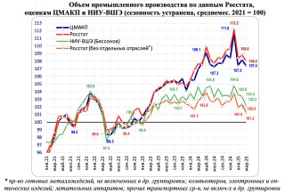 Сначала 2025-го российский индекс промышленного производства (сисключением сезонности) ежемесячно снижается. Под давлением сверхвысокой ставки гражданские сектора уменьшают производство товаров иуслуг. Авоенные сектора,кредитуемые поспецсхемам,выпуска неснижают.