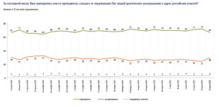 С29июня по13июля неделю доля граждан,которым приходилось «слышать отзнакомых критические высказывания вадрес властей»,увеличилась с25% до30%,показал опрос ФОМ.