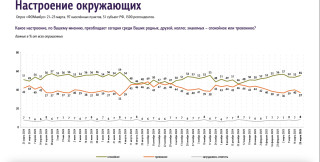 То,что идет война,большинство всвоем быту незамечает. Поэтому 57% опрошенных,согласно самому свежему изеженедельных ФОМовскихзамеров,отмечают «спокойное» настроение среди окружающих,итолько 37%— «тревожное». Такая пропорция считалась неплохой ивмирные времена.