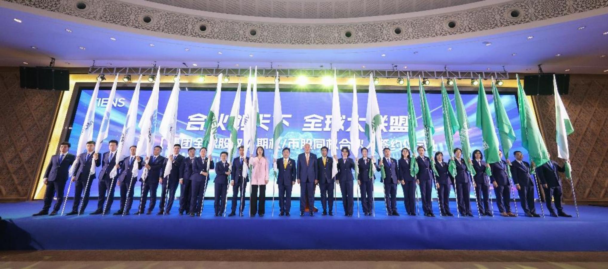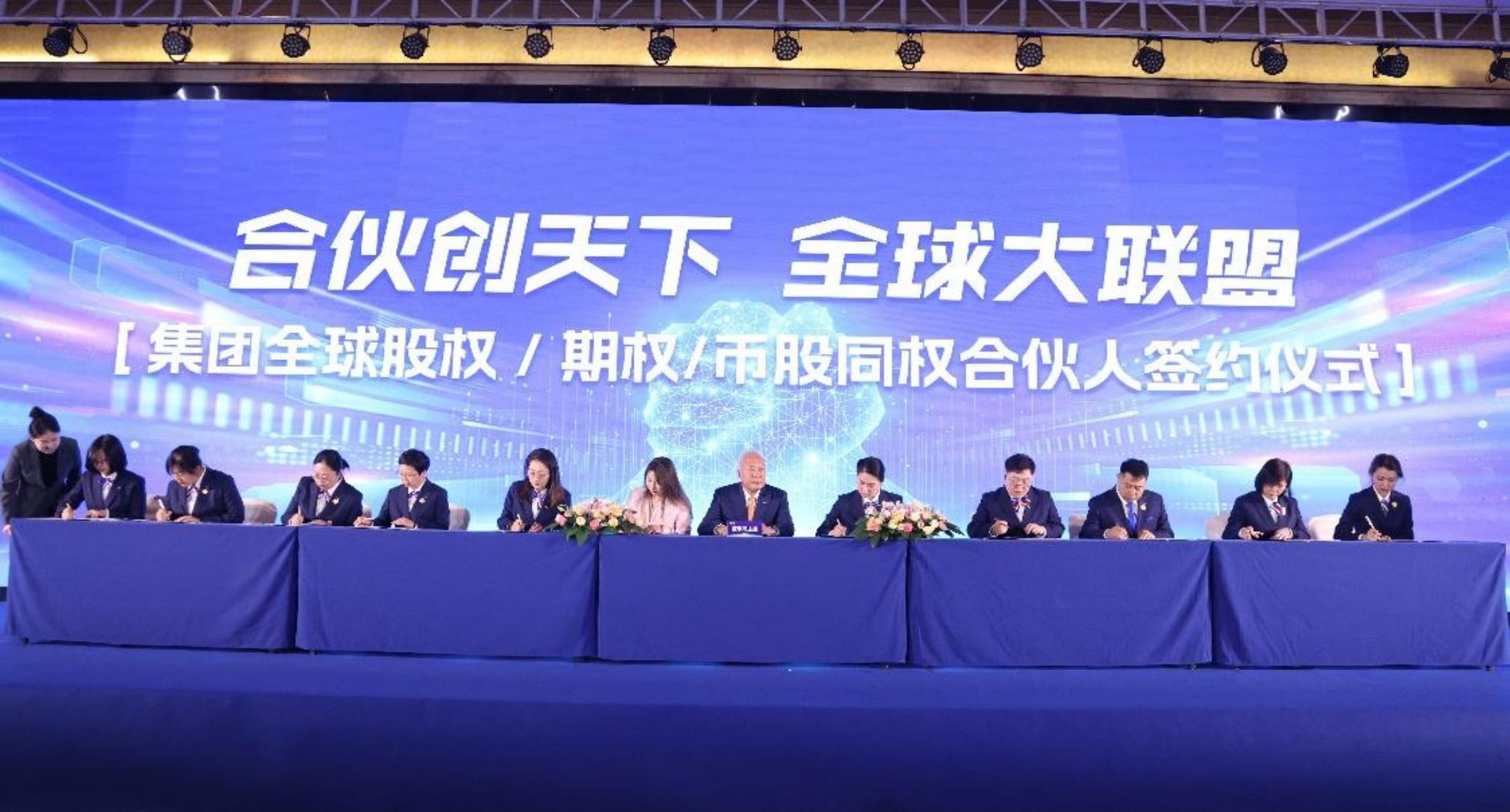 Г-н Ли Цзиньюань, председатель совета директоров Tiens Group, подписывает соглашение с представителями глобальных партнеров