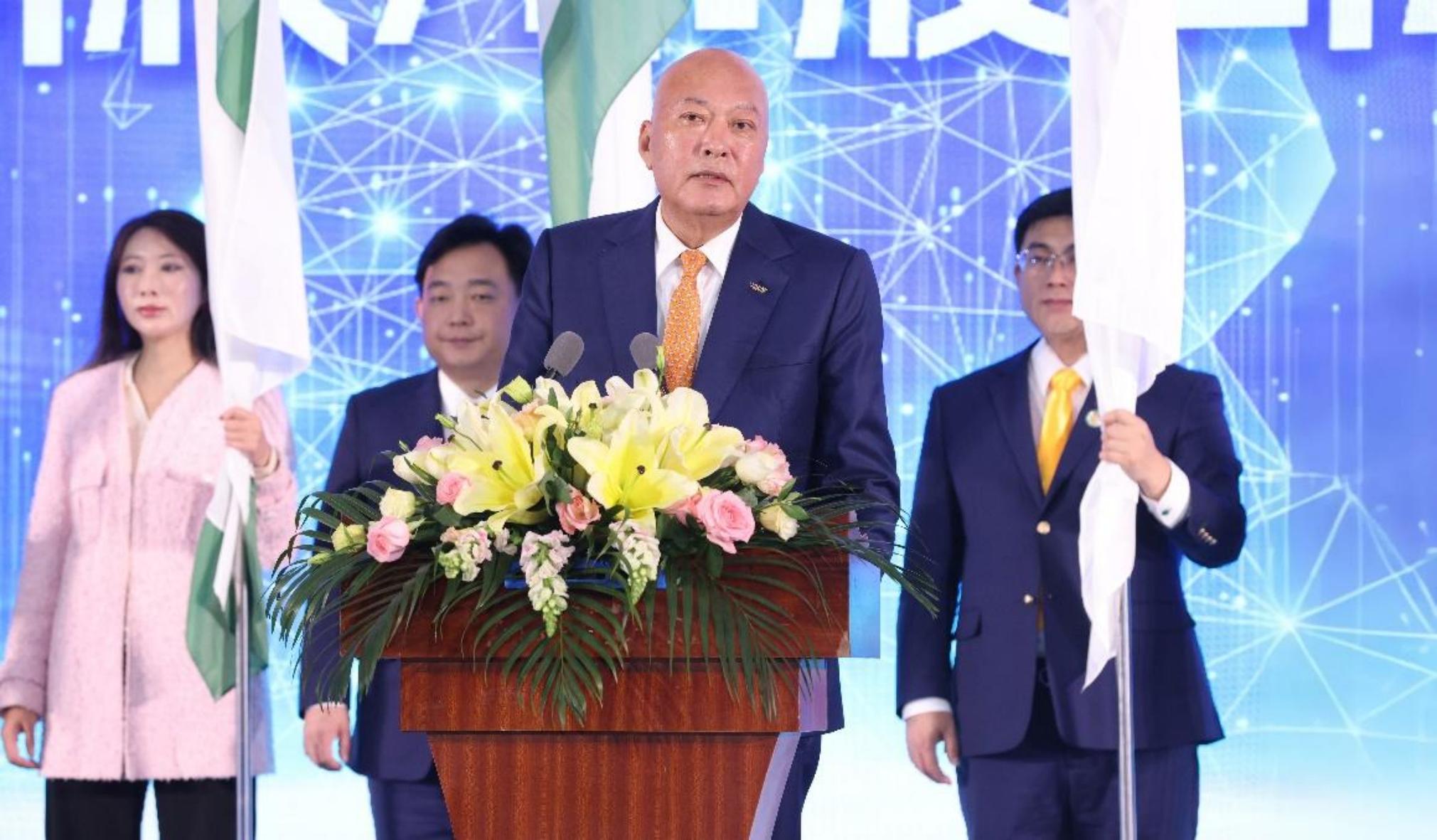 Г-н Чжан Чжунтао, генеральный директор Tiens Group, выступает с речью на месте