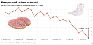 Основной источник новостей— это запрос поисковика Google.com сключевыми словами «экономика России» ифильтром податам запрошедшую неделю спонедельника повоскресенье. Каждая новость оценивается подвум шкалам: важность (от1 до9) инаправление (от-8 до+8). Дальше считается сумма произведений этих величин для каждой новости иделится на10 (число новостей). Полученное значение рейтинга прибавляется кзначению запредыдущую неделю.
