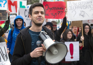Артем Лоскутов во время первомайской «Монстрации» в Новосибирске в 2018.